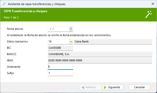 • En la Fecha de abono, si se indica una fecha entonces se fuerzan todos los vencimientos a la misma fecha, en caso contrario cogerá la fecha de abono de cada uno de los vencimientos.