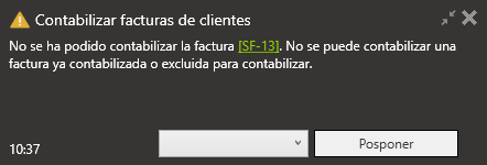 A continuación, se incluye la notificación que se recibirá si se intenta contabilizar.