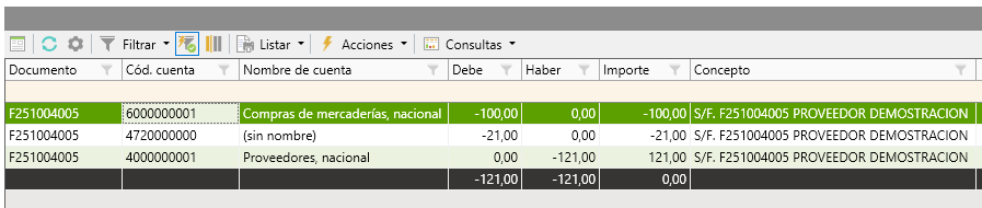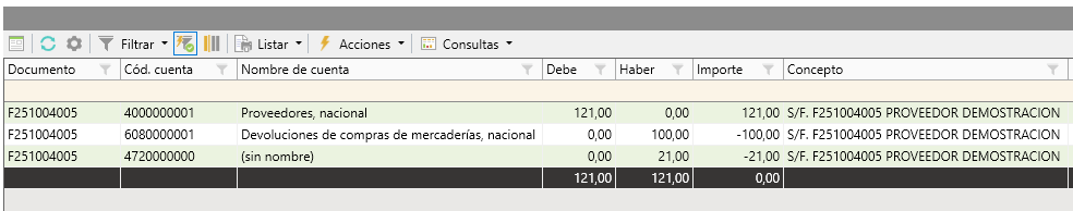 En el caso de no existir definidas las cuentas de devoluciones, estos movimientos seguirán contabilizándose con importe negativos.