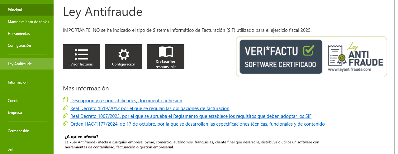Cumpliendo con la normativa de la Ley Antifraude, desde la presente actualización, Aliquo está certificado para la presentación a Veri*Factu.