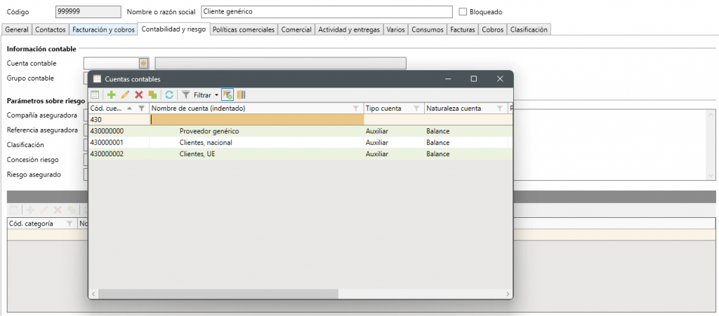 Se amplía la funcionalidad de las cuentas contables enlazando con la tabla Cuentas contables, para mejorar la visualización de la cuenta seleccionada.