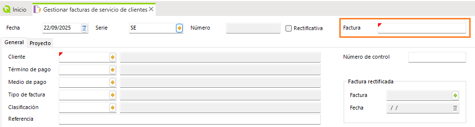 En las facturas de servicios cuando se utiliza una serie externa se desactiva el cuadro de texto para indicar el número y se activa el cuadro de texto para indicar la factura. En el caso de gestionar facturas de notas, entonces en la lista de factura podrán mostrarse las columnas de Número o Factura, según nos interese.