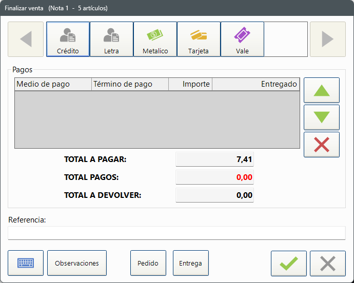 Una vez hayamos introducido todos los artículos correspondientes a la venta, podemos proceder a finalizar la venta pulsando sobre el botón